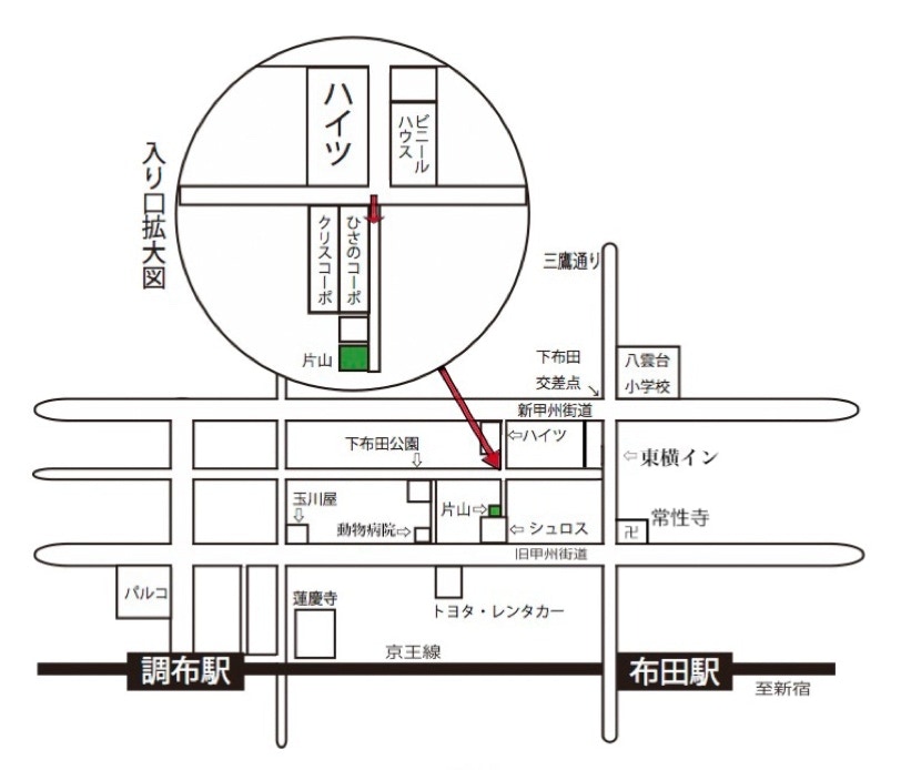 。下布田公園側の通りからおいでください